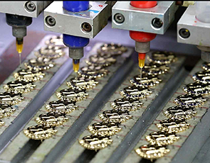 烤漆是在徽章制造中的一種噴漆制作方法(工藝)。其方法是:在打磨到一定粗糙程度的基底上滴上若干層亞克力油漆。并經高溫烘烤定型。 該工藝目前對油漆要求較高,顯色性好。烤漆徽章的制作材料一般為銅、鐵、鋅合金等,其中以鋅合金、鐵質、青銅用的最多,其表面多具有明顯的凹凸感,質感好,適合一些中高檔徽章的制作。制作流程:設計制圖——出黑(凸起)白(凹下)菲林——曬版——咬版——刻模——切模——沖壓——拋光——電鍍——焊配件——上色(烤漆)——加波麗——烘干——品檢——包裝——出貨。
